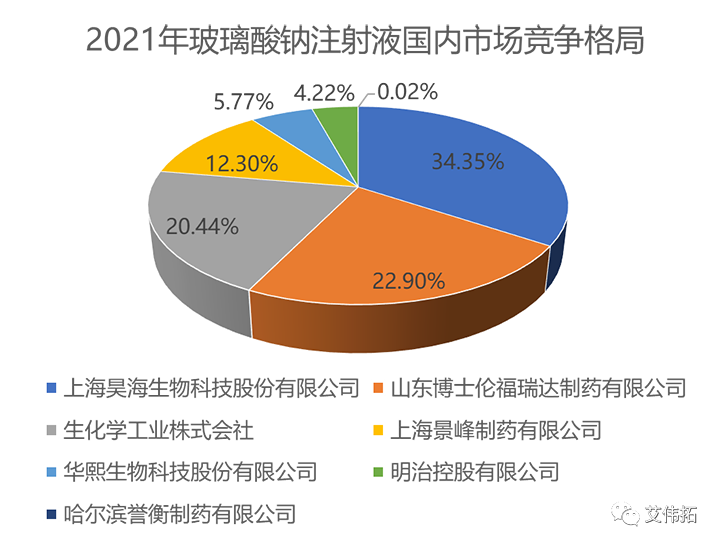 玻璃酸鈉注射液需要按療程進(jìn)行treatment,一個療程需要注射1~5次不等。目前在國內(nèi)上市的玻璃酸鈉注射液大都是5次一療程,市場占比three的分別是昊海生物的“玻璃酸鈉注射液"、博士倫福瑞達(dá)的“海力達(dá)"、日本生化學(xué)的“阿爾治",三者占據(jù)了75%以上的shichang份額。三款藥物的主要成分是分子量在60萬~150萬的玻璃酸鈉,濃度在10mg/mL。